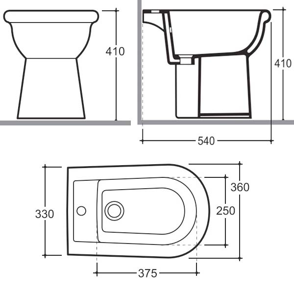 Напольное биде Керамин Ареццо с угловым скрытым креплением. Биде изготовлено из 100% фарфора с гразурованным покрытием.