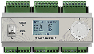 Euroster Uni 2 универсальный, погодозависимый контроллер отопительной системы. Графический дисплей с подсветкой и многофункциональная поворотная ручка регулировки обеспечивают интуитивное и простое обслуживание контроллера. Комплект датчиков.