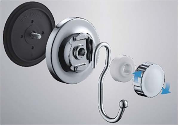 Крючок Ledeme L3705-1 изготовлен из пластика и стали, цвет хром. Крючок крепится к стене вакуумной присоской.