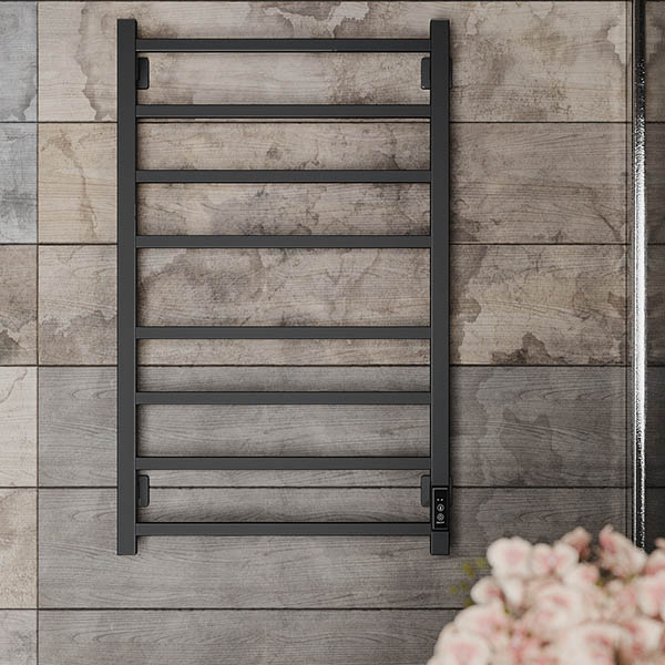 Полотенцесушитель Roxen Square 11050-5385B электрический - стильная современная модель с квадратным профилем на 8 перекладин в черном матовом цвете, актуальном для современных интерьеров. Изготовлен из высококачественной углеродистой стали толщиной 2 мм, которая обладает высокой прочностью и устойчивостью к износу. Углеродистая сталь способна выдерживать высокие температурные нагрузки, именно это свойство позволяет проводить покраску изделия при максимальной температуре, что дает наилучшее запекание краски и делает покрытие максимально плотным, крепким и устойчивым. Специальное защитное покрытие не оставляет отпечатков пальцев на поверхности и надежно защищает изделие от воздействия влаги и механических повреждений. В качестве нагревательного элемента используется нагревательный кабель сухого типа, который при включении быстро и равномерно прогревает всю поверхность изделия и отлично держит температуру. Подключение при помощи кабель-вилки, либо возможен вариант скрытого электрического соединения. Каждый полотенцесушитель проходит лазерную обработку швов, что дает увеличенный гарантийный срок до 10 лет.