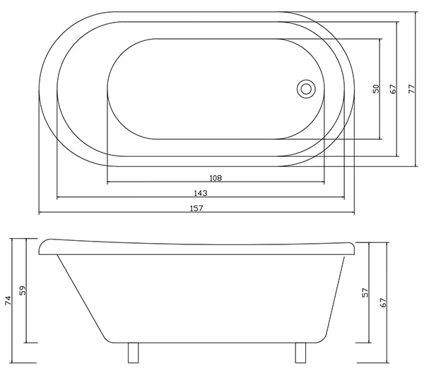 - размер ванны (ДхШхВхГ): 157x77x74x59 см