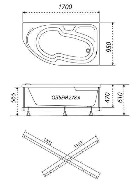 - армированное дно ванны для дополнительной прочности и надежности эксплуатации